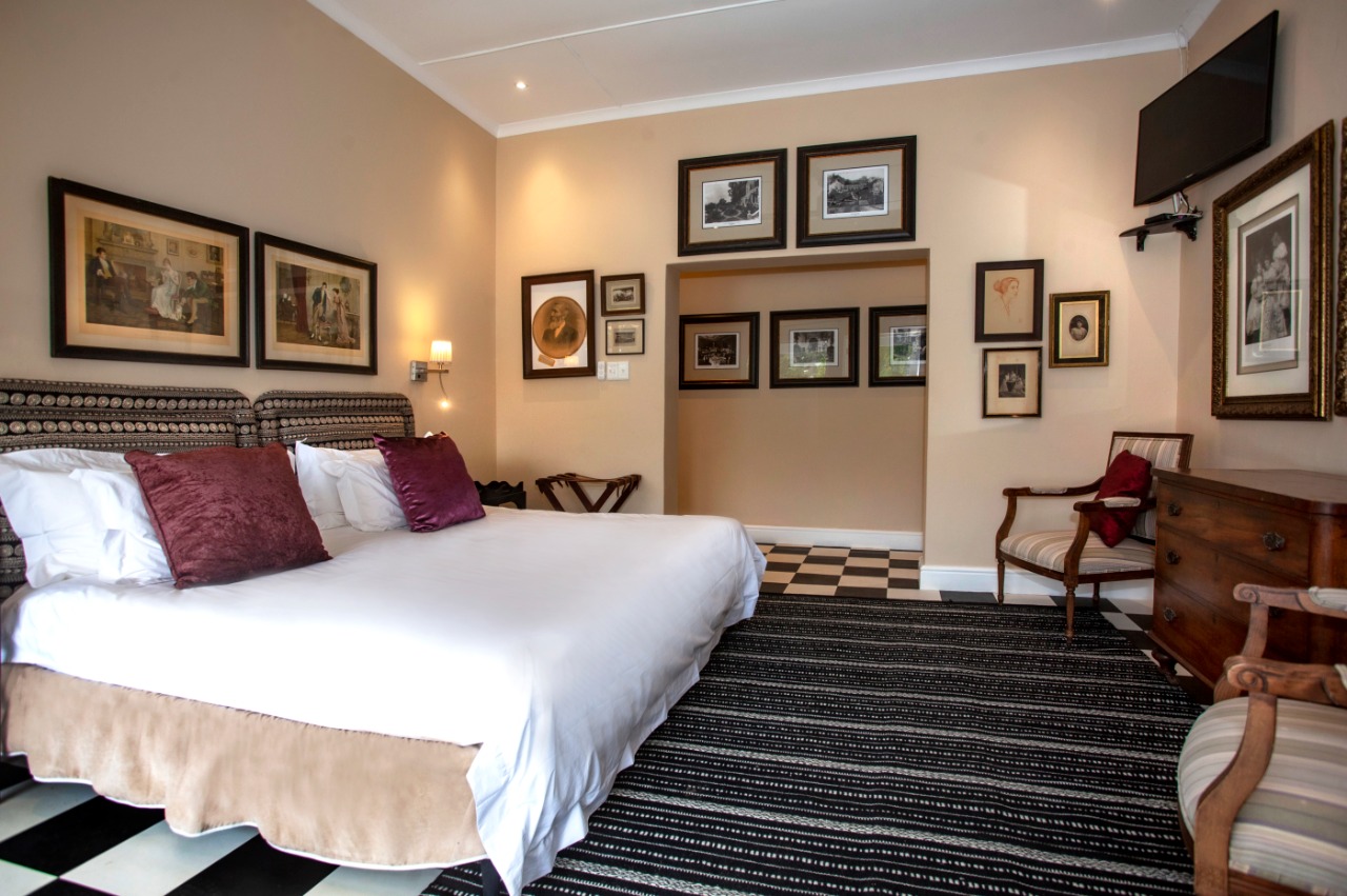 Design wise the Prynnsberg Room is light years away from the likes of the Magnolia Room (celebrating the work of South African Artist Tretchikoff, the most successful selling commercial artist of the twentieth century). Or the look and feel of the Baines’ Room - in celebration of Thomas Baines the Livingstone era artist (1820-1875), not to be confused with Thomas Bain the master road builder (of 1830-1893) of nearby Tradauw Pass fame. Or the vibe of the GVW room, kindly adopted and decorated by South African advertising creative legend, and Great Gatsby fan Graham Victor Warsop.