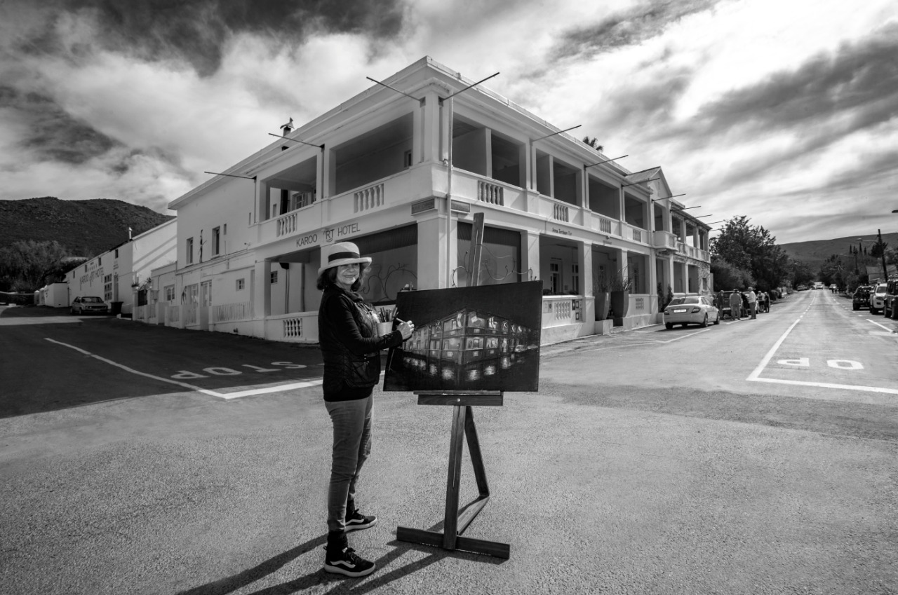 The hotel had gone out of business. It was quite alarming. There was an auction banner flapping off the front verandah. One thing lead to another. We'd end up taking ownership of the distressed Karoo Art Hotel in the August 2022.