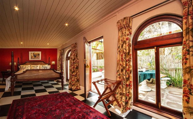 The Potters Cottage has its own kitchenette A feature of the room are a pair of historic teak windows which once served as office windows in Johannesburg's first 'proper' building The Corner House private courtyard in the Garden
